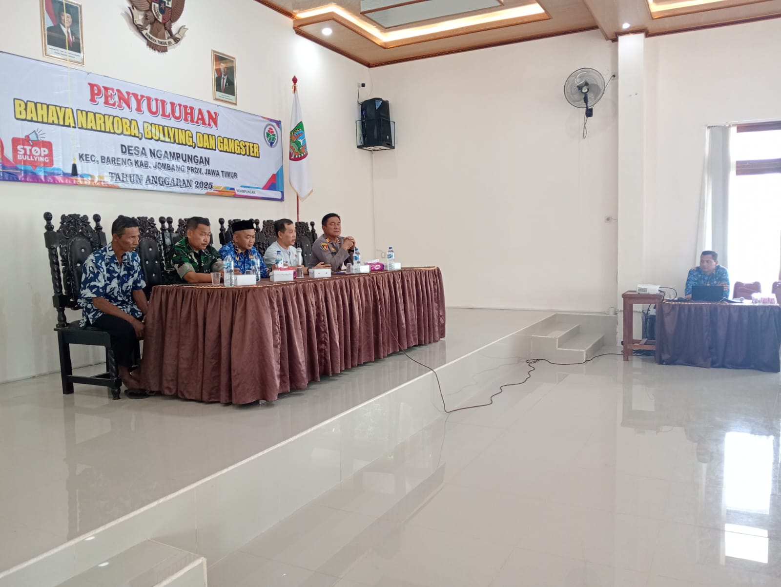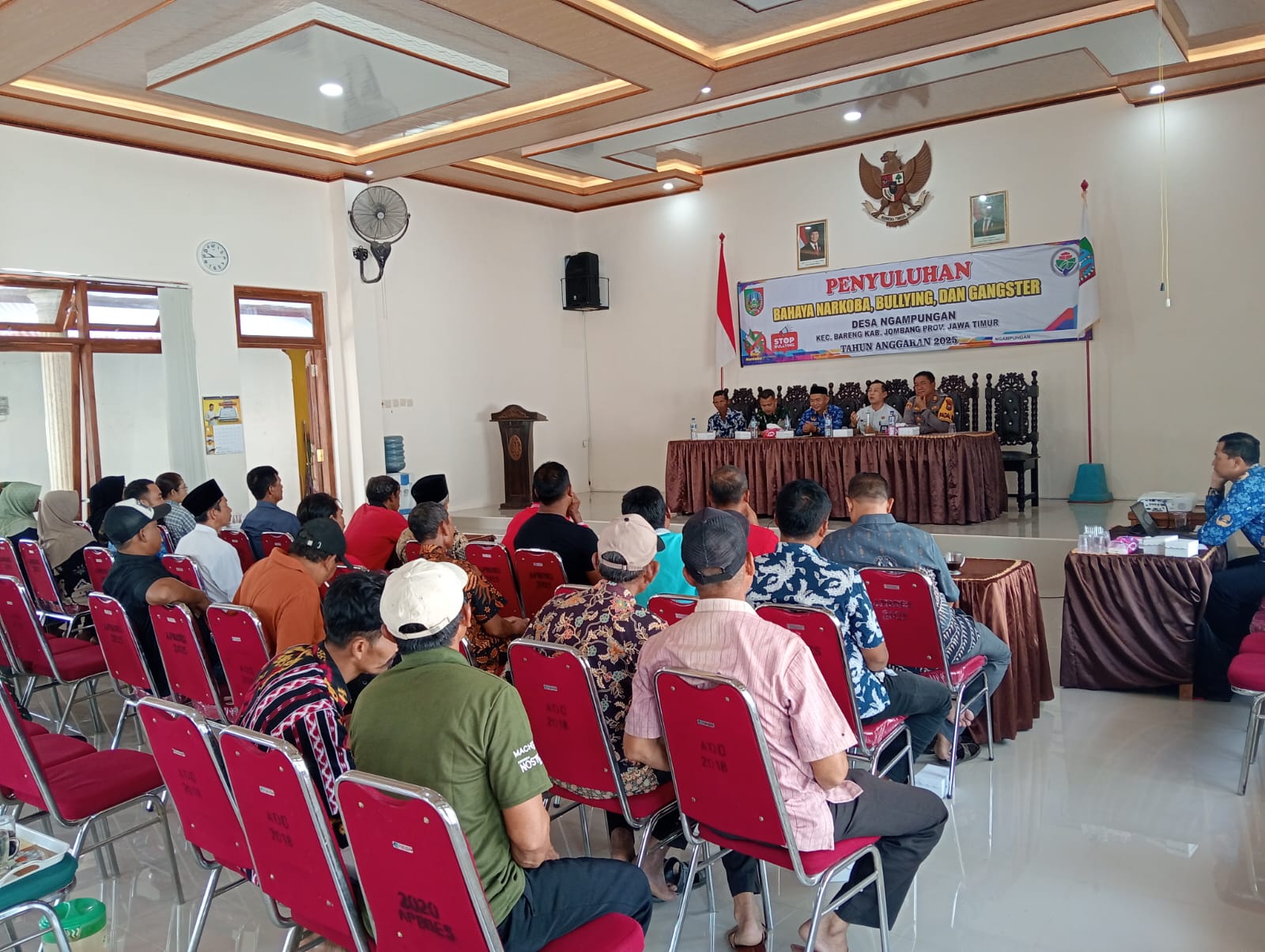 Pemerintah Desa Ngampungan mengadakan kegiatan sosialisasi/penyuluhan bahaya narkoba kepada masyarakat dan generasi muda dimana kegiatan tersebut dilaksanakan di Aula Kantor Balaidesa Ngampungan Kecamatan Bareng.